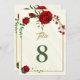 carte numéro de table de fleurs rouges