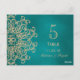 CARTE NUMÉRO DE TABLE DE MARIAGE INDIEN turquoise