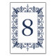 Les cartes numériques modernes d'inspiration marocaine comportent une bordure géométrique en bleu marine et blanc entourant votre numéro de table. Le design se répète à l'envers. Coordonnée avec notre suite de faire-part de mariage Marrakech dans Navy.