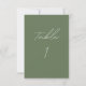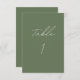 Carte Numéro de table verte Olive