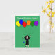 Carte d'anniversaire d'une religieuse en habit noir traditionnel tenant des ballons.