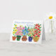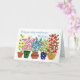 Une carte de récupération rapide avec une rangée de pots de fleurs aux couleurs vives, d'un collage de papier peint à la main par Judy Adamson. Veuillez me contacter par mon magasin si vous souhaitez que le texte de couverture avant soit modifié et que l'intérieur soit laissé en blanc pour votre propre message.
