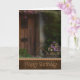 Bouquet d'oeillet dans tricycle à l'ancienne par vieille porte en bois pour anniversaire