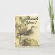 L'avant de ce modèle vintage de carte de remerciement affiche le message appréciable "Merci !" en texte, ainsi qu'une représentation d'un oiseau debout. L'intérieur est un message de remerciement personnalisé. Une carte comme celle-ci pourrait être utilisée pour faire express à la gratitude pour quelque chose de spécial que quelqu'un a fait.