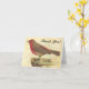 L'avant de ce design de carte de remerciements d'apparence vintage comporte le message appréciable "Merci !" en texte, ainsi qu'une représentation d'un oiseau debout sur une corniche. A l'intérieur, un message de gratitude personnalisé. Une carte comme celle-ci pourrait être utilisée pour remercier quelqu'un qui a fait quelque chose de spécial.