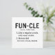 Simple design d'oncle d'anniversaire heureux avec la citation "Fun-cle noun (fuhn-kel)..." Ce joyeux anniversaire d'oncle saluant sous forme de définition fait un beau cadeau pour le papa bonus dans votre vie.