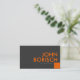 Modèle gris-foncé professionnel moderne de carte de visite avec un carré orange. Au frontpage le texte nommé est la même couleur que le carré d'orange, au secondaire les séjours nommés mais la couleur orange change en le gris. Observez très la conception entraînante, contemporain et propre. Fait dans quelques autres variations aussi, comme énumérées ci-dessous.