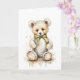 Doux portrait d'un petit ours heureux avec un ruban vert lime et des pois blancs. Carte de vœux vierge pour anniversaire, anniversaire de mariage, nouveau bébé, merci, etc.