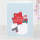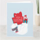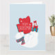 La carte Whimsical Holiday comporte un foulard portant un ours polaire qui jongle avec des cadeaux sur ses pieds arrières. Turquoise, rouge et blanc sur bleu clair arrière - plan lui donne une ambiance de vacances rétro.
