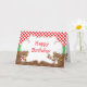 Une carte d'anniversaire d'ours chef cuisinier pour cette occasion spéciale. Le fond est à carreaux rouges et à pois marrons. Les mots peuvent être changés en vos propres détails