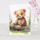 Bébé d'ours marron à l'aquarelle mignon assis sur une rondelle pour l'anniversaire. Le texte intérieur est modifiable.