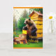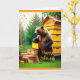 Cette carte d'anniversaire avec deux images différentes présente un ours grizzli qui vole du miel d'une ruche.