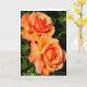 Une photo d'une paire de fleurs d'roses hybrides d'orange doré est imprimée sur cette carte de voeux personnalisable, prête à inclure votre touche personnelle. Personnalisez le texte à l'intérieur de cette carte en utilisant les nombreux styles et couleurs de police de Zazzle ou supprimez-le et laissez-le vide si vous le souhaitez. Ajoutez du texte sur le devant si vous le souhaitez. Vous pouvez également ajouter un certain nombre d'icônes amusantes parmi lesquelles Zazzle doit choisir. Amusez-vous à en faire votre propre ! Si vous avez besoin d'aide, n'hésitez pas à me contacter, et je serai très heureux de vous aider. Vous pouvez me contacter via ma page Facebook Wolf Moon Art and Design. Vous pouvez trouver le lien sur ma page d'accueil dans mon magasin. Regardez le bas de la page où il est écrit "Connectez-vous à l'art et au design de Wolf Moon". Photographie originale copyright 2019 de Karen Coffelt.