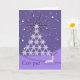 Con paz, Avec paix en espagnol, sapin de Noël et carte de cerf. Carte de voeux de Noël dans les tons violet violet. La carte comprend un sapin de Noël fait de flocons de neige, une starburst violet foncé et argenté, et un cerf gracieux de couleur blanc cassé. Copyright © Shoaff Ballanger Studios, 2024.