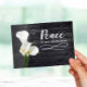 Exprimez votre sympathie à quelqu'un avec cette carte élégante, avec le message, Paix pour vos cœurs endeuillés." Le design apparaît sur un fond de lys et de bois. L'intérieur peut être personnalisé mais contient ce message, "Nous pensons à vous en cette période de deuil et vous envoyons nos prières et notre sympathie la plus sincère à vous et à votre famille."