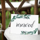 Indiquez les places réservées à votre mariage avec ce panneau botanique chic. Personnalisez avec une ligne de texte personnalisé en écriture de script de calligraphie (illustrée par "Réservé"), encadrée par une verdure d'aquarelle luxuriante et des feuilles d'eucalyptus.