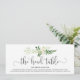 Une carte de table pour la réception de mariage de la mariée et du marié avec de jolies aquarelles de verdure. À suspendre au-dessus des tables de mariage individuelles ou des plans de table. Un panneau de table haute de mariage avec une jolie police rustique. Des cartes de table uniques assorties sont également disponibles dans cette section. L'illustration a été peinte ici dans l'atelier et est unique à The Stationery Concierge.