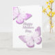 Un papillon en haut et en bas de l'image avec le message “Joyeuse fête des mères” au milieu, tout en rose sur fond blanc par martinspixs.