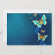 Or volant, papillon bijoux sur arrière - plan textuel bleu. Conception avec papillons.