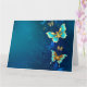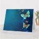 Or volant, papillon bijoux sur arrière - plan textuel bleu. Conception avec papillons.