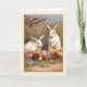 Cette illustration vintage de Pâques est tellement mignonne ! Deux lapins blancs de Pâques dans un champ avec un panier de Pâques d'oeufs colorés et 5 mignons poussins jaunes de Pâques. Mignonne. L'intérieur de cette carte a été gardé vierge en attendant votre message spécial de Pâques.