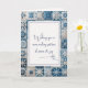 Une courtepointe présente des motifs complexes qui ressemblent à des flocons de neige. Chaque bloc est décoré de motifs bleus et blancs uniques. Tout le texte peut être modifié.