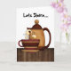 C'est la carte parfaite pour ouvrir la discussion sur le partage. Il y a deux femmes assis à une table qui boivent du café et sur le dessus de la carte on peut lire "partons"