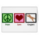 Jolie carte Cougars qui fait un grand cadeau pour un fan Cougars. Un signe de paix, un coeur, et un cougar qui saute.