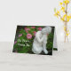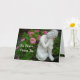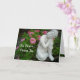 Greeting card with Image of a Bouddha statue nestled amongst pink flowers and green foliage. Be Peace, Peace Be saying on front.