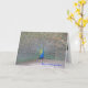 Peacock - Adieu : Un paon bleu magnifique, fier, avec un superbe spectacle de fantasme sur le devant de cet adieu / adieu / désolé de vous voir aller carte. A l'intérieur se trouve une image exotique d'un bassin d'eau bleu cristal avec palmiers