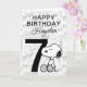 Célébrez l'anniversaire de votre enfant avec cette carte Snoopy super mignonne. Personnalisez avec le nom et l'âge de votre enfant.