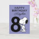 Célébrez l'anniversaire de votre enfant avec cette carte Snoopy super mignonne. Personnalisez avec le nom et l'âge de votre enfant.