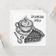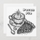Une carte carré à plat. Un côté est une page de coloriage avec un morceau de tarte de pacan et une tasse de café. Le dos est vide pour que vous puissiez garder et colorier pour vous-même ou vous pouvez l'envoyer à un ami et écrire une note sur le dos.