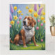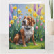 Un chien joyeux est assis paisiblement sur une herbe verte luxuriante, entouré de floraisons printanières colorées sous un ciel bleu doux. Cette peinture numérique à l'huile capture un moment serein avec des coups de pinceau expressifs, des couleurs chaudes et un sentiment de joie douce.