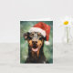 Design de Noël coloré et joyeux avec un Doberman portant un chapeau de Père Noël.