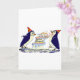 Cette conception est de deux pingouins devant un gâteau d'anniversaire. L'un souffle les bougies tandis que l'autre est frappé au visage par le gel.