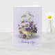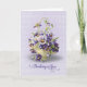 Panier des pensées sur l'arrière - plan pourpre de texture avec la frontière de dentelle pour la pensée générale à vous.