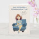 Pensez à vous carte de voeux avec une femme assise dans une chaise avec une bulle de pensée qui dit VOUS dedans! Cette carte peut faire la journée de n'importe qui !