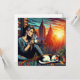 Jolie comic book pop art femme assise dans une fenêtre de la ville lisant un livre, buvant du café pendant que son chat fait la sieste à côté d'elle.