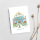 Envoyez à quelqu'un qui vous manque une note spéciale avec cette carte de réflexion de vous avec une maison d'aquarelle dessinée à la main avec un mignon chat tabby orange assis à l'extérieur, pensant à vous.