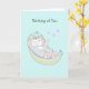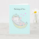 Penser à You kitty chat avec coeur dans hamac sur arrière - plan bleu clair. Le texte peut être personnalisé. Idéal pour les amis, la famille, partenaire et plus.