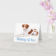 Ce mignon carte pour notes canin "Penser à vous" présente l'image d'un chien chiot espagnol breton endormi, bronzé et blanc, reposant sur un arrière - plan blanc crémeux.