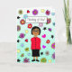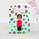 Jolie carte avec des fleurs d'art populaire géantes dessinées à la main et dame disant, "penser à toi" et puis en utilisant l'humour à l'intérieur de la carte, en disant que j'espère que tu vas bien, non, j'espère que tu le tueras !." La dame est dessinée avec une peau plus foncée pour représenter différentes ethnies.
