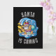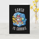 Magnifique design de Noël avec le Père Noël sur planche de surf et la phrase "Père Noël arrive". Un parfait accord pour les prochaines fêtes de Noël.