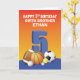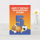 Un garçon de cinq ans appréciera sans aucun doute cette carte qui présente une collection de boules de sport sur son front et a un message amusant lié au sport. Le plus important est que vous pouvez personnaliser ceci avec son nom et sa relation pour lui saluer un heureux 5ème anniversaire.