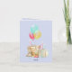 Avant : Pierre le lapin avec le texte "Joyeux anniversaire" avec le thème du beignet À l'intérieur à droite : Joyeux anniversaire ! texte dans le thème du beignet Retour : ballons avec cadeaux design