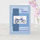 Un moto bleu sur un arrière - plan bleu abstrait. Le front dit "Joyeux anniversaire à mon merveilleux arrière-petit-fils". Une grande carte pour un arrière petit-fils qui est un passionné de moto. Les textures à l'avant de cette carte sont imprimées.