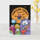 Pour petit-fils. Un groupe de monstres effrayants, effrayants et drôles est la principale caractéristique de cette carte amusante pour Halloween. Un monstre tient un cupcake recouvert de sang avec un globe oculaire coincé dedans. Une carte amusante pour les garçons.