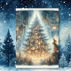 Carte de Noël personnalisée. Jolie illustration éthérée d'une fée debout dans une forêt enchantée art de Noël mystique.