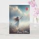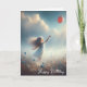 Carte Petite Fille Avec Balloon Rouge Anniversaire